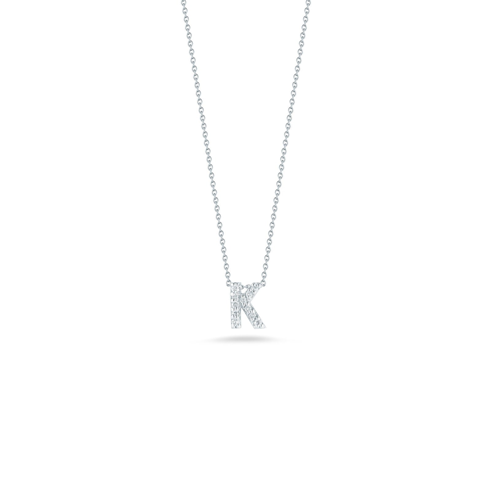 Roberto Coin 18kt White Gold Diamond 'K' Initial Necklace