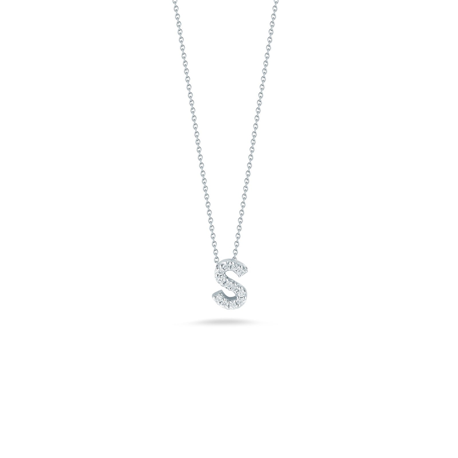 Roberto Coin 18kt White Gold Diamond 'S' Initial Necklace