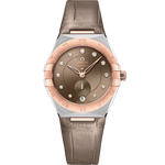 This 34 mm model in 18K Sedna™ gold and stainless steel features a bezel with engraved Roman Numerals, a light chestnut dial, and a round date window at the 6 o'clock position. The incremental diamond hour markers are presented in 18K Sedna™ gold holders, while the Small Seconds subdial and Central Minute Track are circled by rings.