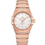 This 39 mm 18K Sedna™ gold model features a bezel engraved with Roman numerals, an opaline creamy silvery dial and a date window at the 6 o'clock position. The hands, OMEGA logo, Constellation star and indexes are all in 18K Sedna™ gold.