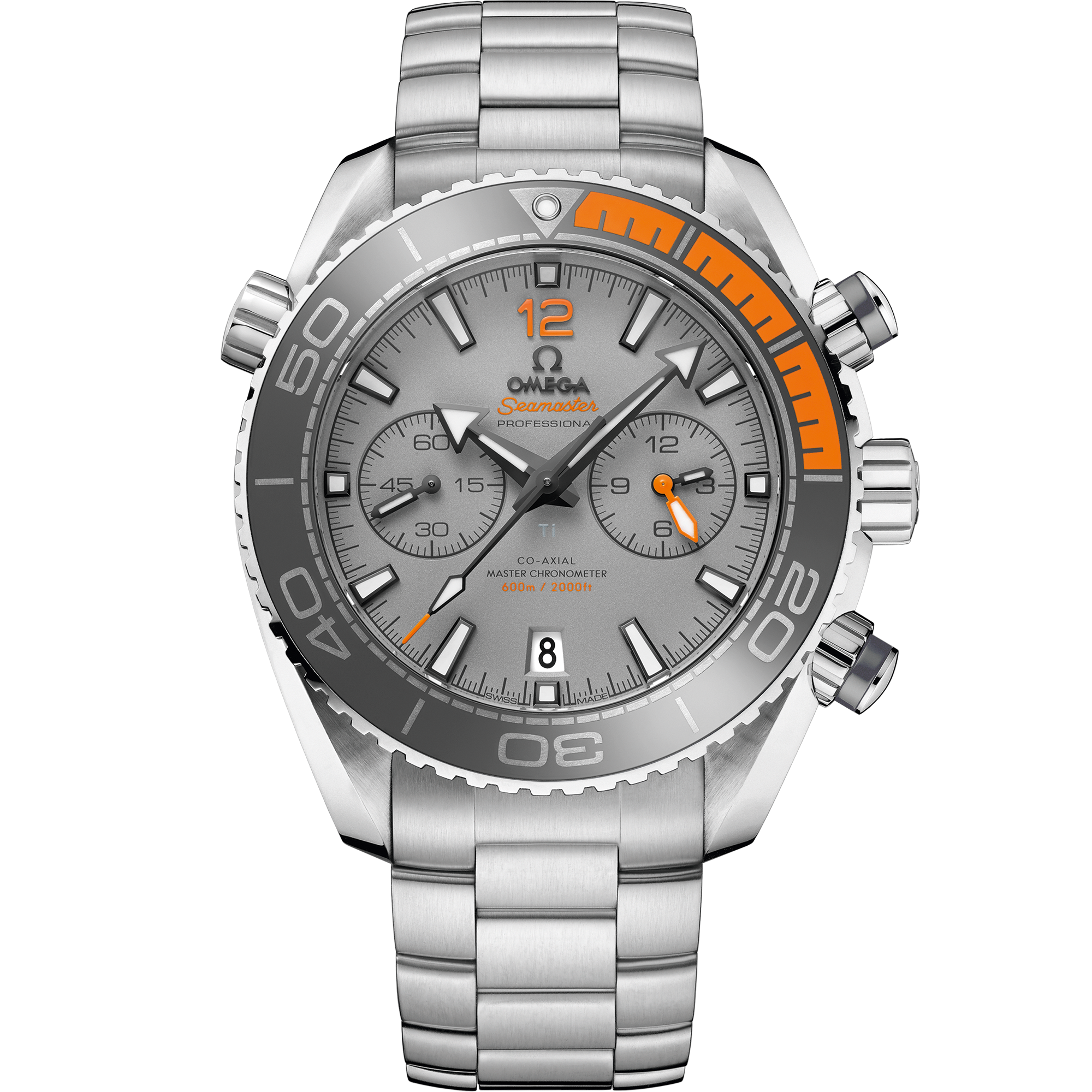 This model, with its scratch-resistant sapphire crystal, features a sand-blasted grade 5 titanium dial with Arabic numerals and a date window at the 6 o’clock position. The dial presents a small seconds sub-dial, as well as 60-minute and 12-hour counters on one dial for intuitive reading of elapsed time. Mounted on the 45.5 mm grade 5 titanium case, is the world's premiere grey silicon nitride ceramic bezel with orange rubber. The diving scale of the bezel is crafted with Liquidmetal™.