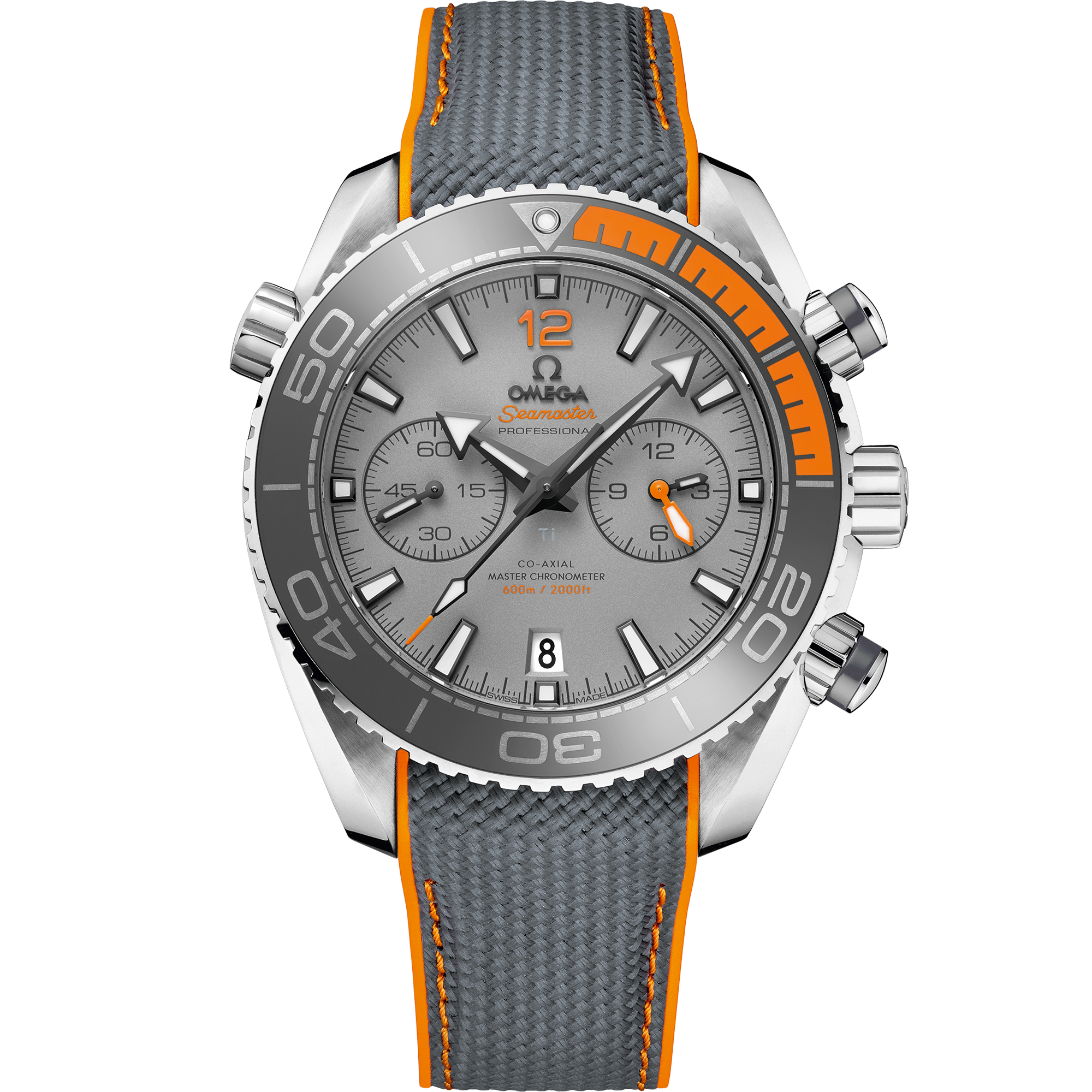 This model, with its scratch-resistant sapphire crystal, features a sand-blasted grade 5 titanium dial with Arabic numerals and a date window at the 6 o’clock position. The dial presents a small seconds sub-dial, as well as 60-minute and 12-hour counters on one dial for intuitive reading of elapsed time. Mounted on the 45.5 mm grade 5 titanium case, is the world's premiere grey silicon nitride ceramic bezel with orange rubber. The diving scale of the bezel is crafted with Liquidmetal™.