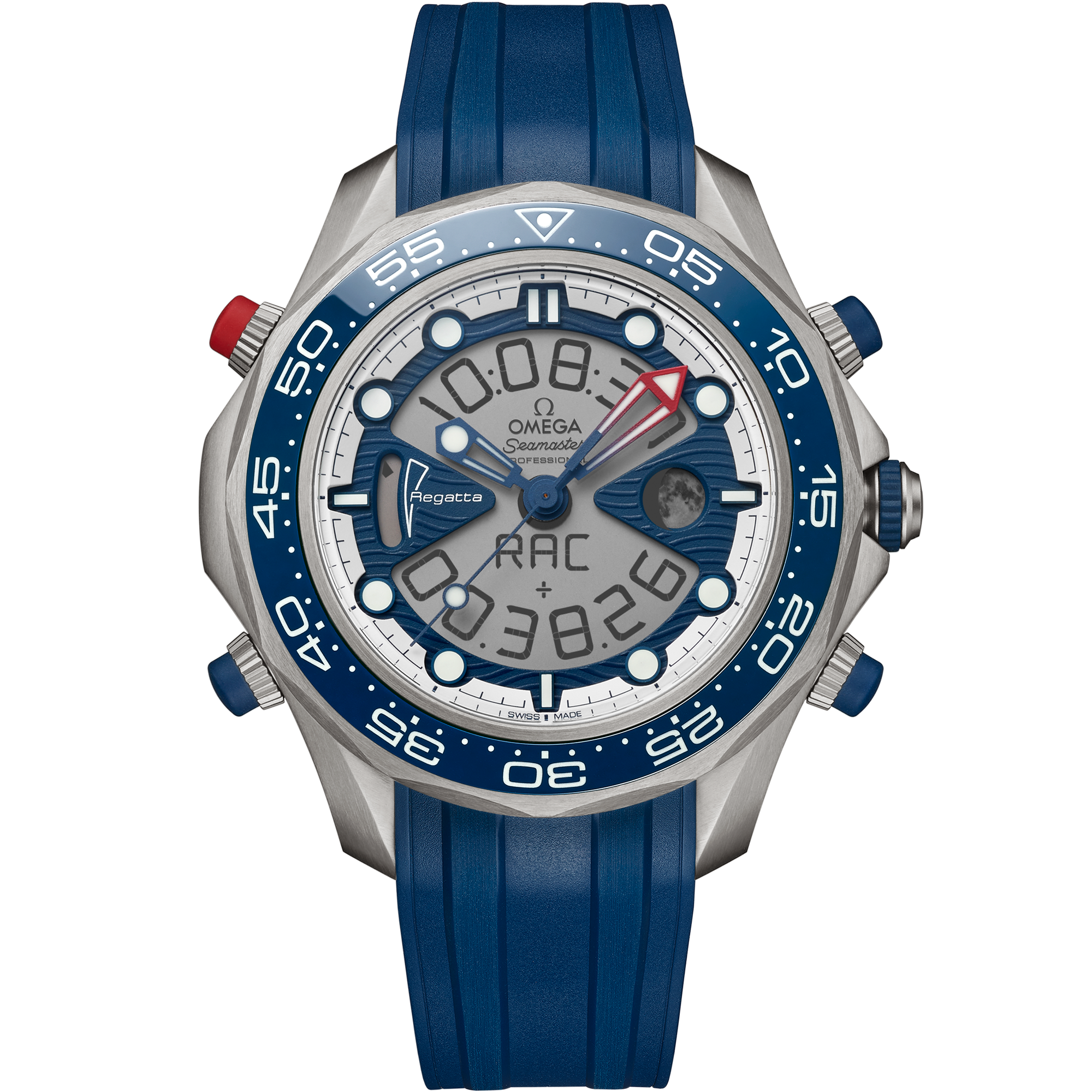 Launched to mark the 37th America’s Cup, the 46.75 mm Seamaster Regatta is an instrument watch for professionals, featuring both analogue and digital displays. Cased in grade 5 titanium, the Seamaster Regatta is fully equipped for life at sea.