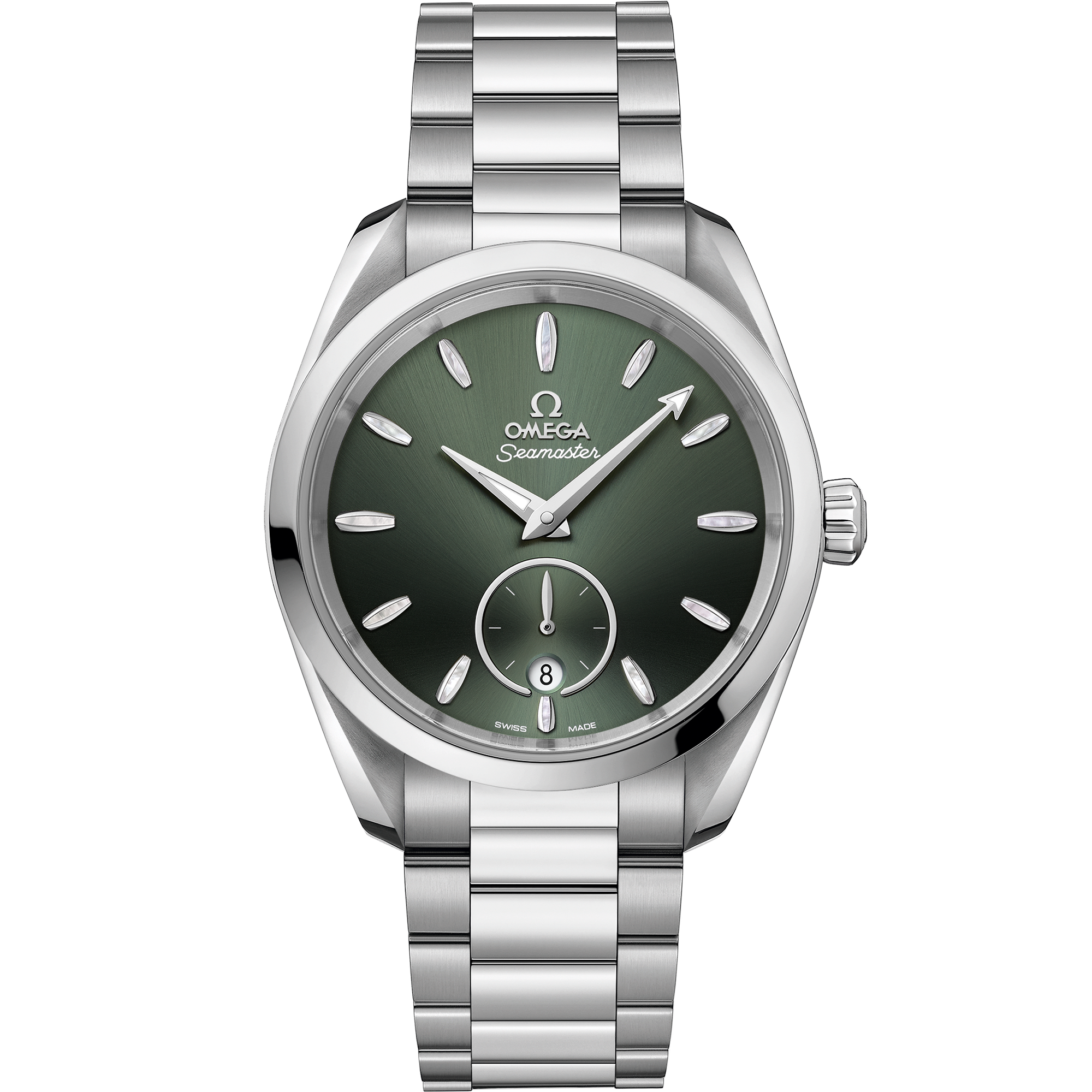 Presented on a polished and brushed bracelet, this timepiece is powered by the OMEGA Co-Axial Master Chronometer calibre 8802, certified at the industry’s highest standard by the Swiss Federal Institute of Metrology (METAS).