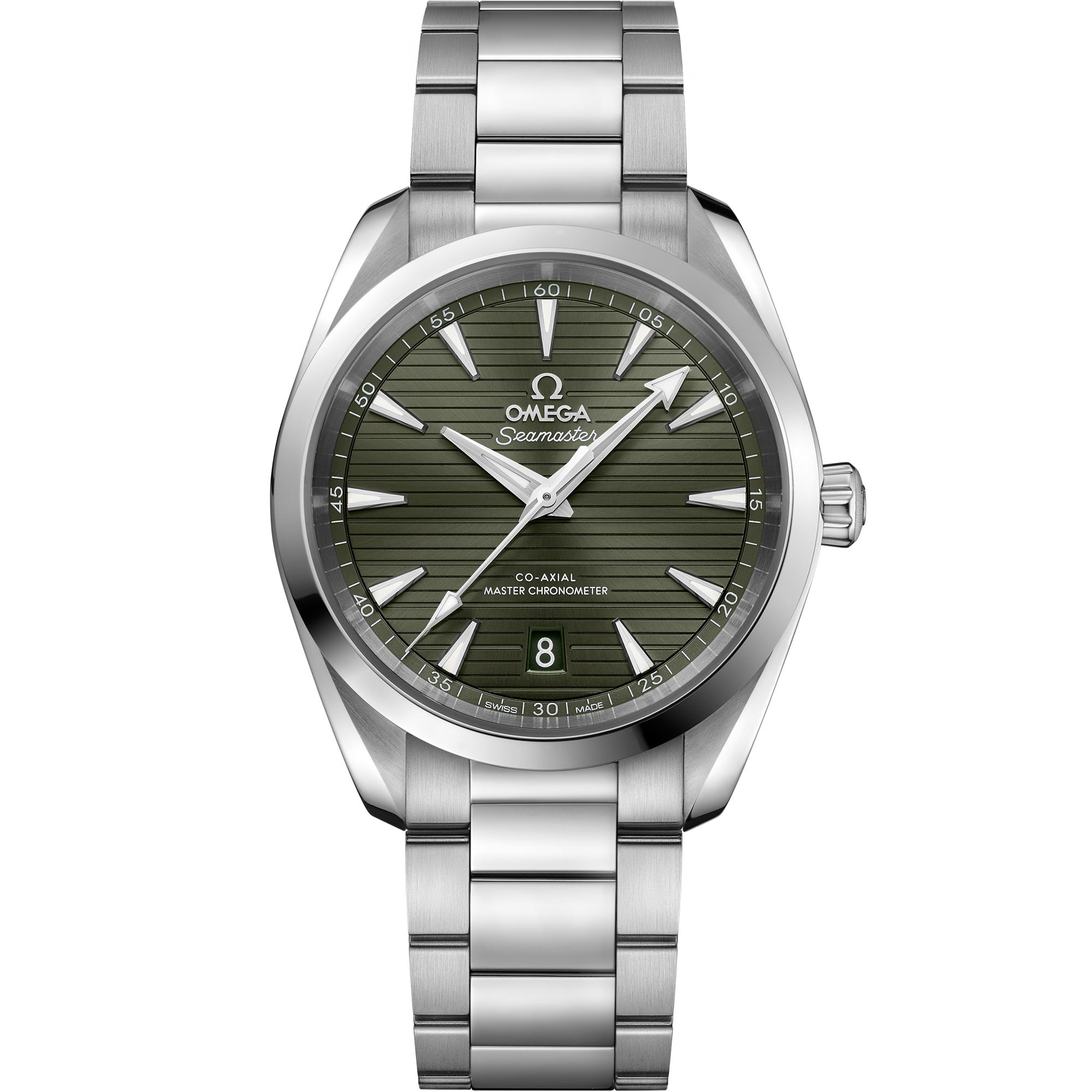 The watch is presented on a polished and brushed bracelet with OMEGA’s patented screw and pin system, and powered by the OMEGA Master Chronometer calibre 8800, certified at the industry’s highest standard by the Swiss Federal Institute of Metrology (METAS).