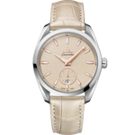 Presented on a beige leather strap, this timepiece is powered by the OMEGA Co-AxialMaster Chronometer calibre 8802, certified at the industry’s highest standard by the Swiss Federal Institute of Metrology (METAS).