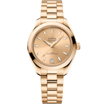 The watch is presented on an integrated 18K Moonshine™ Gold bracelet with beautifully rounded polished-brushed links, a foldover butterfly clasp, and OMEGA’s easy comfort-adjustment system.