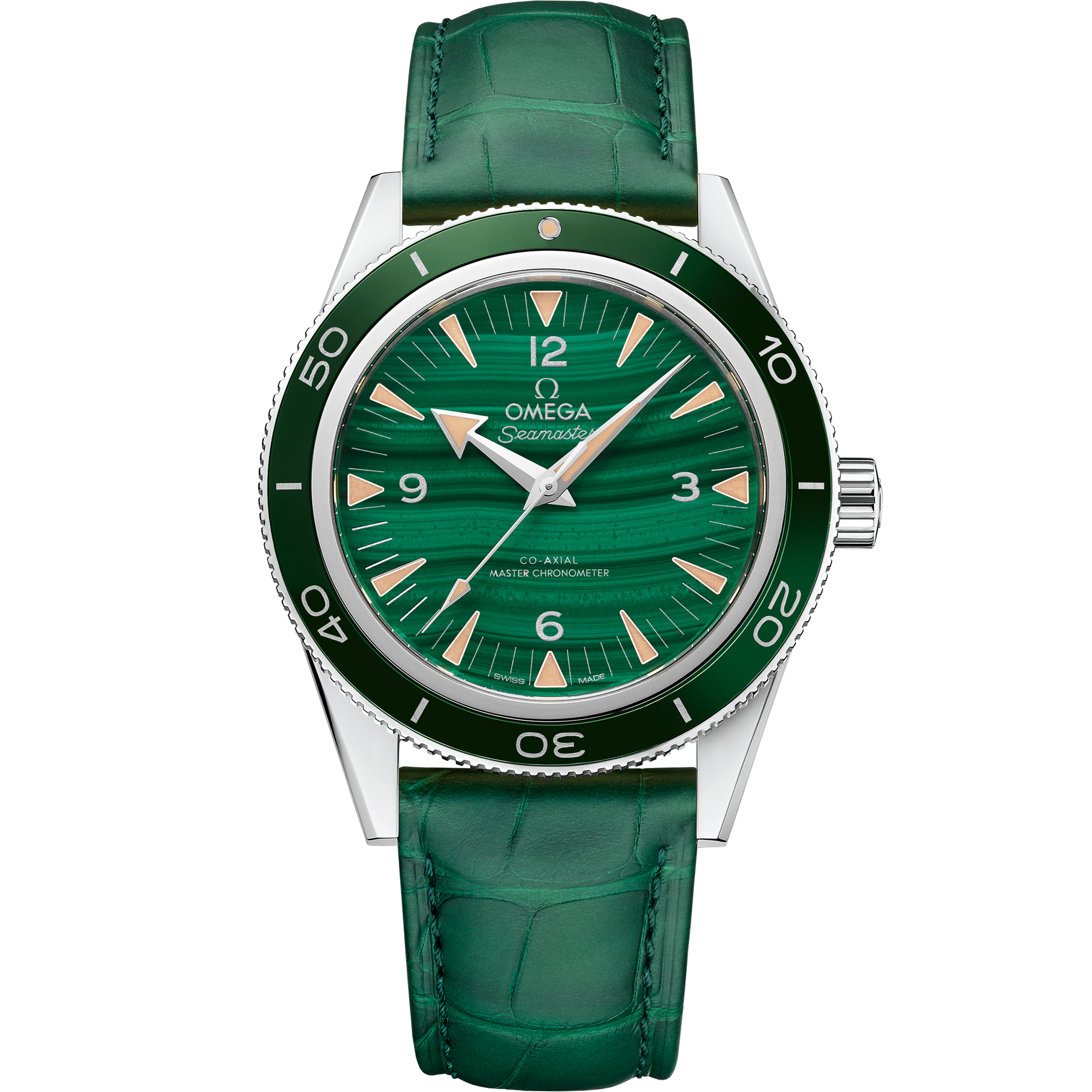Presented on a green leather strap, the watch is driven by the OMEGA Master Chronometer Calibre 8913, certified at the industry’s highest standard by the Swiss Federal Institute of Metrology (METAS).