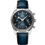 The watch is presented on a blue leather strap with an OMEGA logo in postive relief on the buckle, and is driven by the manual-winding OMEGA Co-Axial Master Chronometer Calibre 9906.