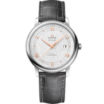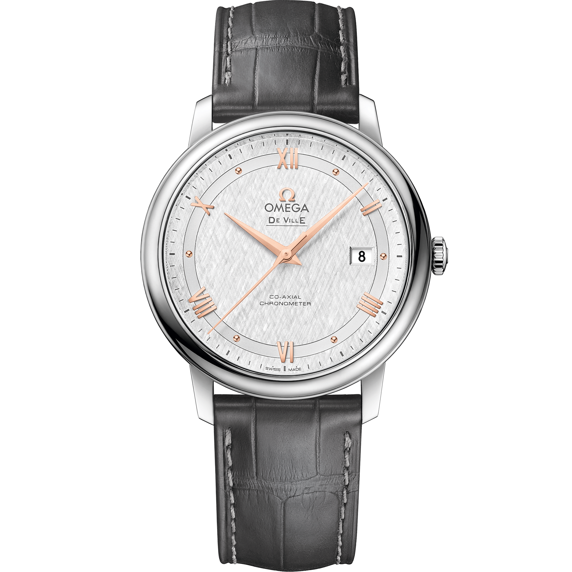 This De Ville Prestige is presented on a grey leather strap and is powered by the OMEGA Co-Axial Chronometer Calibre 2500.