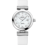The attractive dial is made with white mother-of-pearl, to accentuate the feminine touch.