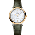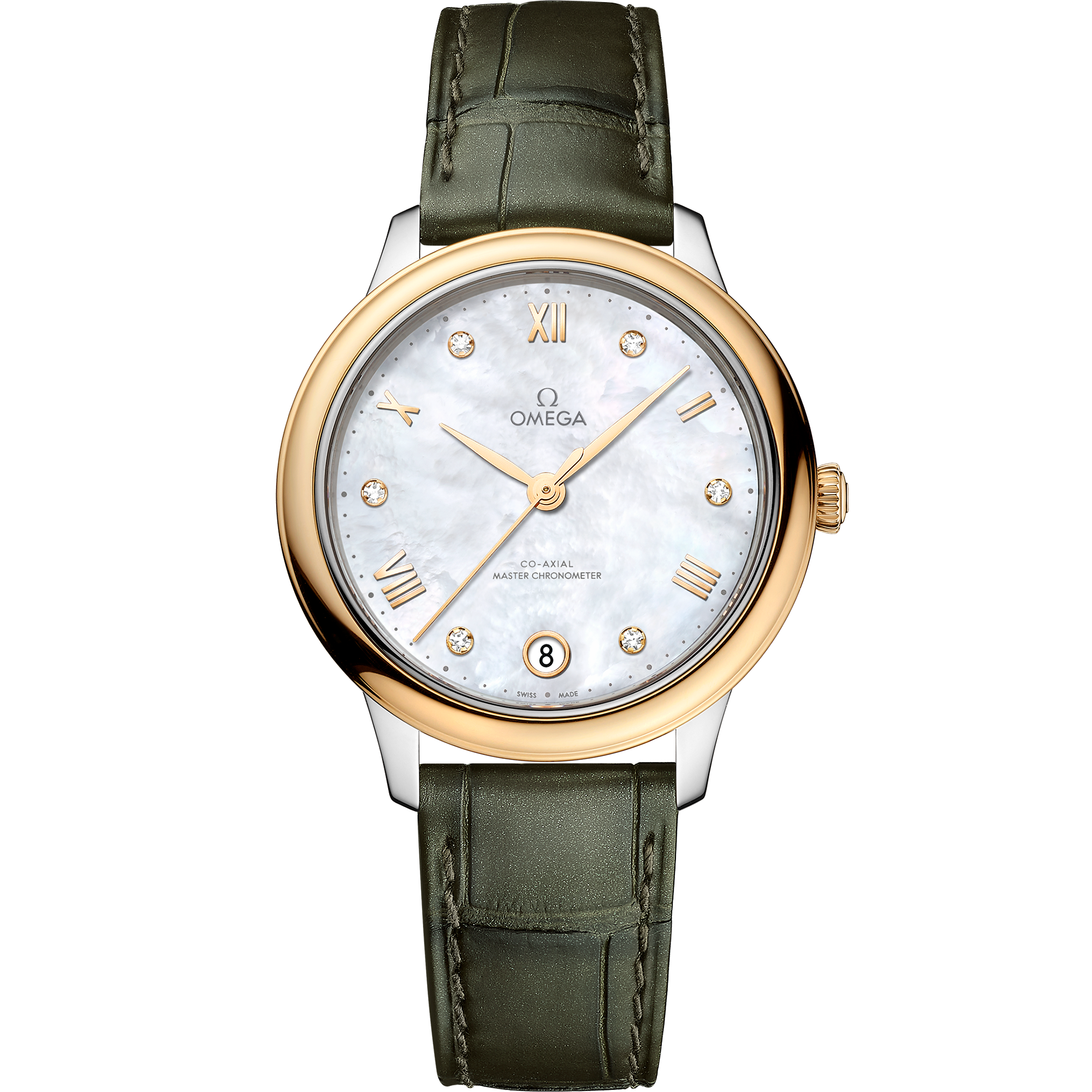 This Master Chronometer certified watch is presented on a shimmering olive green leather strap and is driven by the OMEGA Master Co-Axial Calibre 8800, which can be admired through the scratch-resistant sapphire crystal caseback.