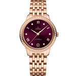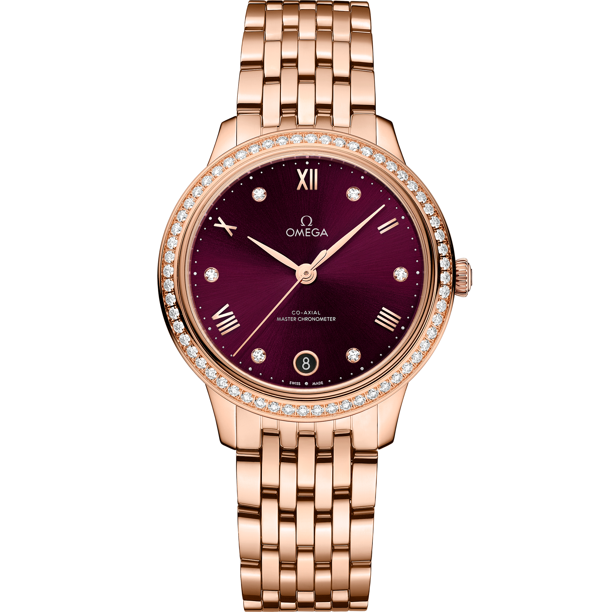 In this 34 mm 18K Sedna™ Gold model with its diamond-paved bezel, the PVD purplish burgundy dial features a sun-brushed finish. The display is distinguished by PVD Sedna™ Gold coloured hands, as well as alternating Roman numerals and diamond markers that are set in 18K Sedna™ Gold holders.