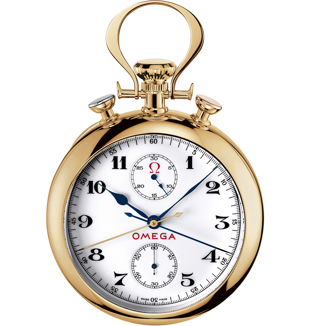 The OMEGA Olympic Pocket Watch is powered by rediscovered unassembled movement kits that had been in storage at OMEGA’s headquarters in Biel since 1932. This horological wonder, made of 18K yellow gold, brings one of the brand’s most storied products – the 1932 pocket chronograph – back to life.