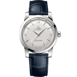 The 38 mm stainless steel case houses an opaline silvery domed dial with Dauphine style hour/minute hands, central second hand, indexes and a vintage OMEGA logo all in 18K white gold.