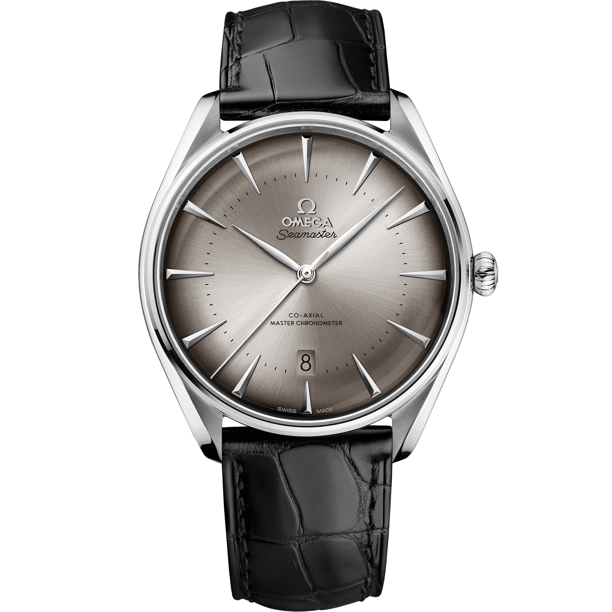 This 39.50 mm watch has a stainless steel case and a smoky light grey lacquered domed dial with a captivating gradient effect. The hands, logo and indexes are 18K white gold and there is a date window at 6 o’clock.