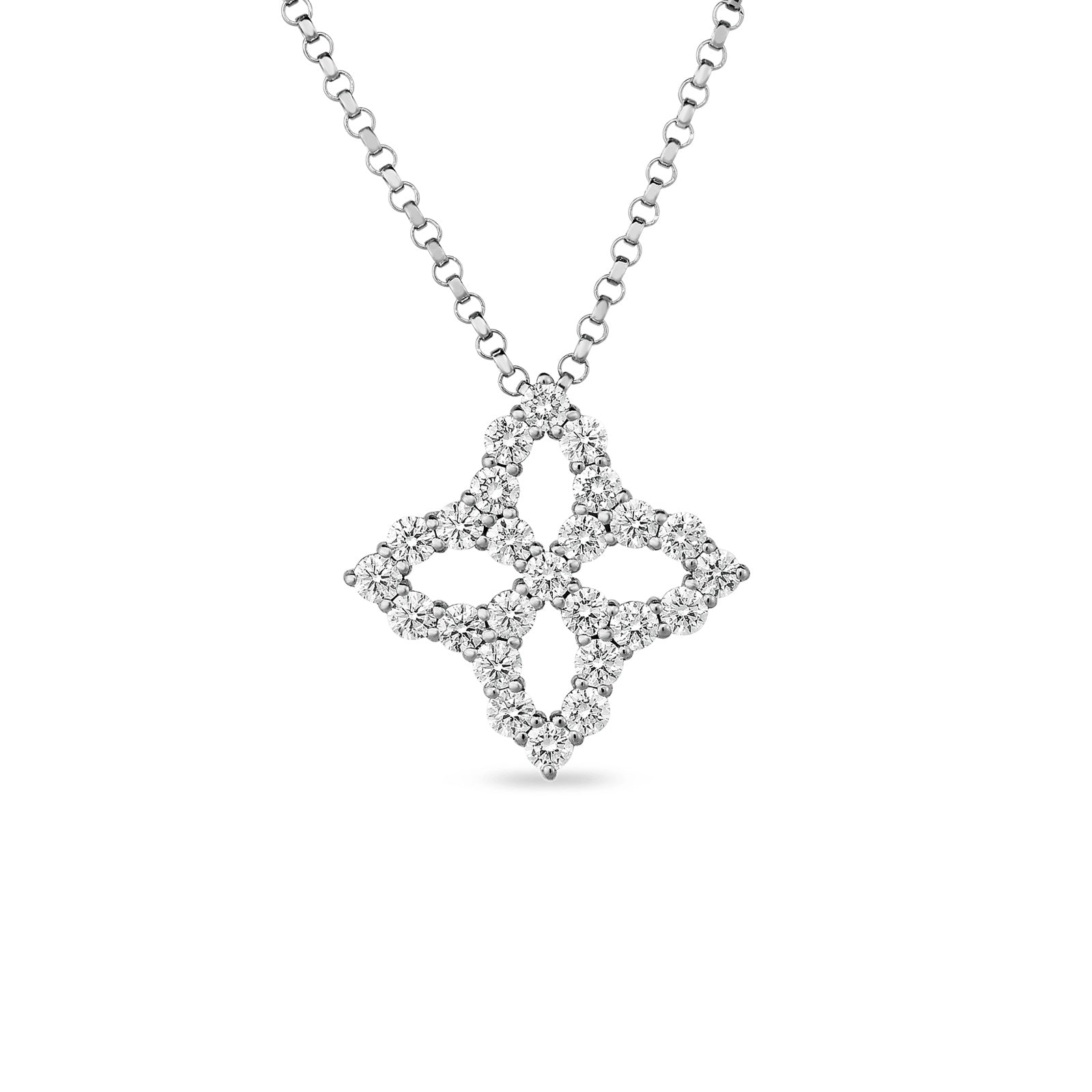 Roberto Coin 18kt White Gold Diamond Princess Flower Pendant Necklace