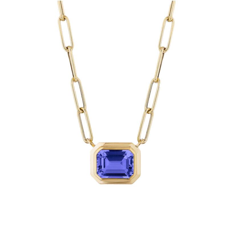 Manhattan Emerald-Cut Tanzanite Paperclip Necklace