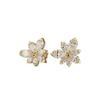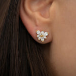 Elevate your style with our exquisite Asymmetric Blossom Stud Earrings, meticulously handcrafted from 18kt yellow gold and adorned with pear-shaped diamonds. The unique floral composition of different-sized diamonds creates a fresh and bright addition to any jewelry collection, making these earrings a luxurious and elegant choice for any occasion.