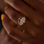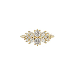 A soft, sculptural take on a traditional diamond ring. The Flora Cluster Engagement Ring features an asymmetrical arrangement of round and marquise cut diamonds in varying sizes, creating organic sparkle from every angle.