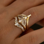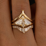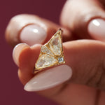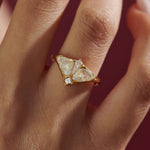 Inspired by the quiet beauty of nocturnal flight, the Moth Ring is a delicate composition of rare diamond cuts that echo the silhouette of a moth in motion. Two modified trillion diamonds form graceful wings, while a carré and kite-shaped diamond complete the body and head. Handcrafted in 18k solid gold, this piece feels both ethereal and sculptural—an unconventional engagement ring with poetic presence.