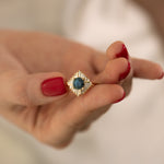 • ~1.5ct brilliant-cut teal sapphire (one-of-a-kind)