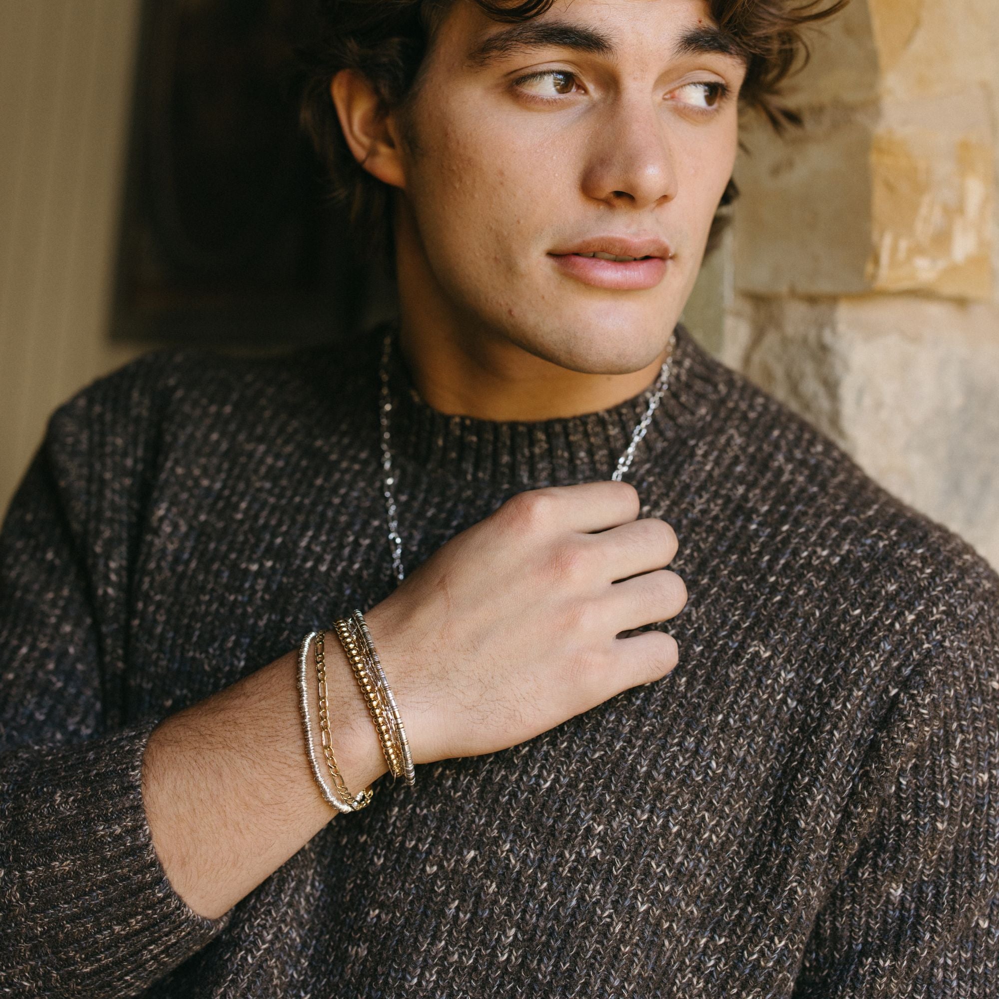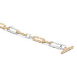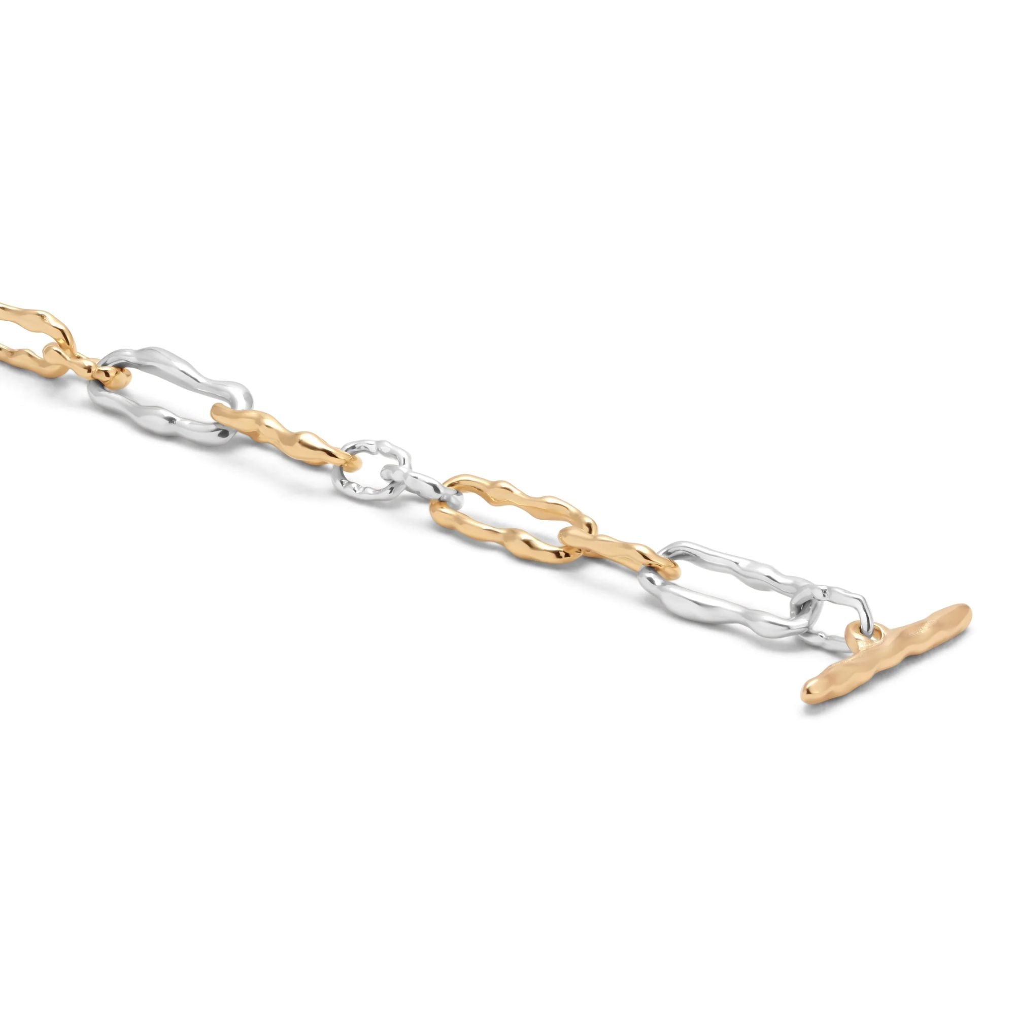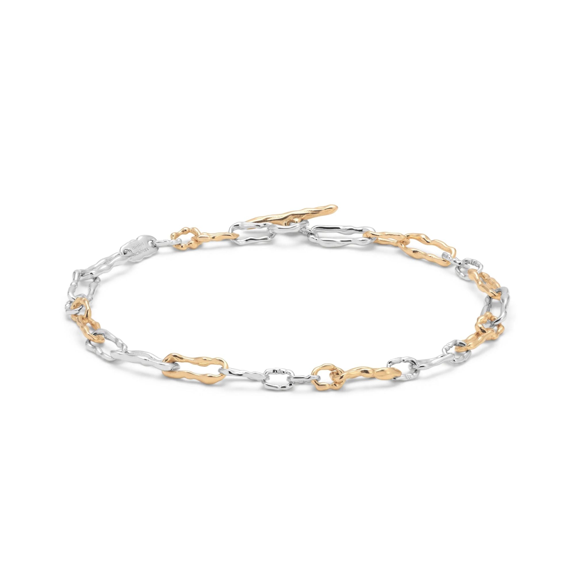 This bracelet blends solid 18k yellow gold and sterling silver in a sleek, small-scale Dryp design. The mixed-metal look brings both visual depth and versatile style, making it a piece that works just as well dressed down or elevated.