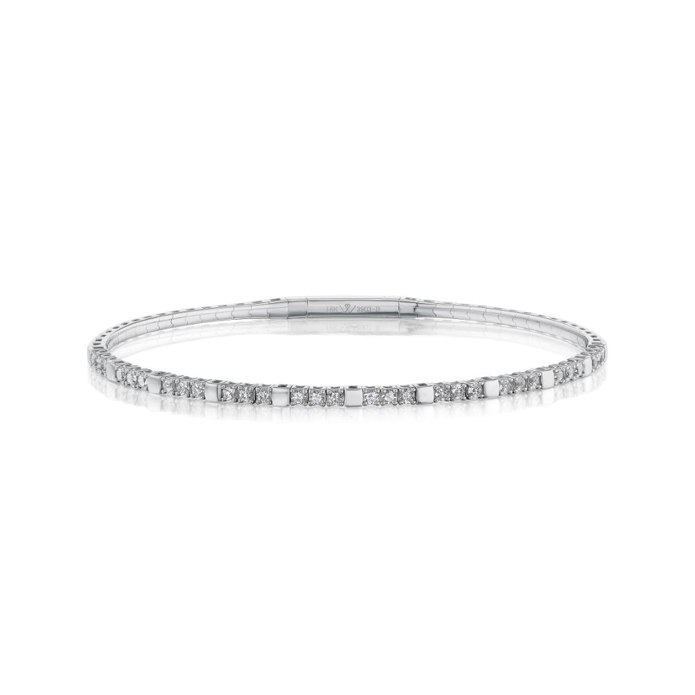 This natural diamond flex bangle brings a clean, structured feel to your wrist stack. With a geometric pattern and flexible fit that slips on effortlessly, it adds just the right amount of shine to your stack.