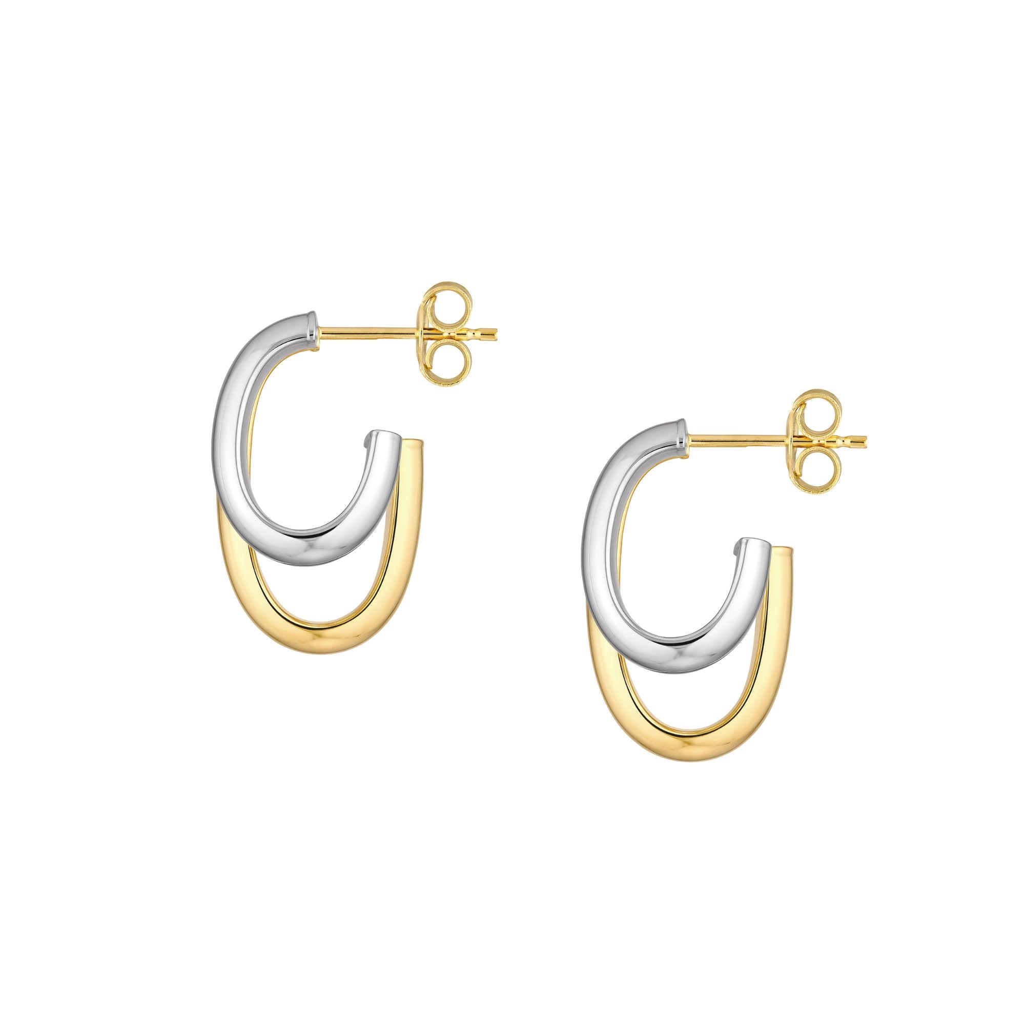 A bold take on the everyday hoop. These open hoops feature a chunky silhouette with contrasting yellow and white gold. The mixed metals give them the perfect natural versatility for every day wear.