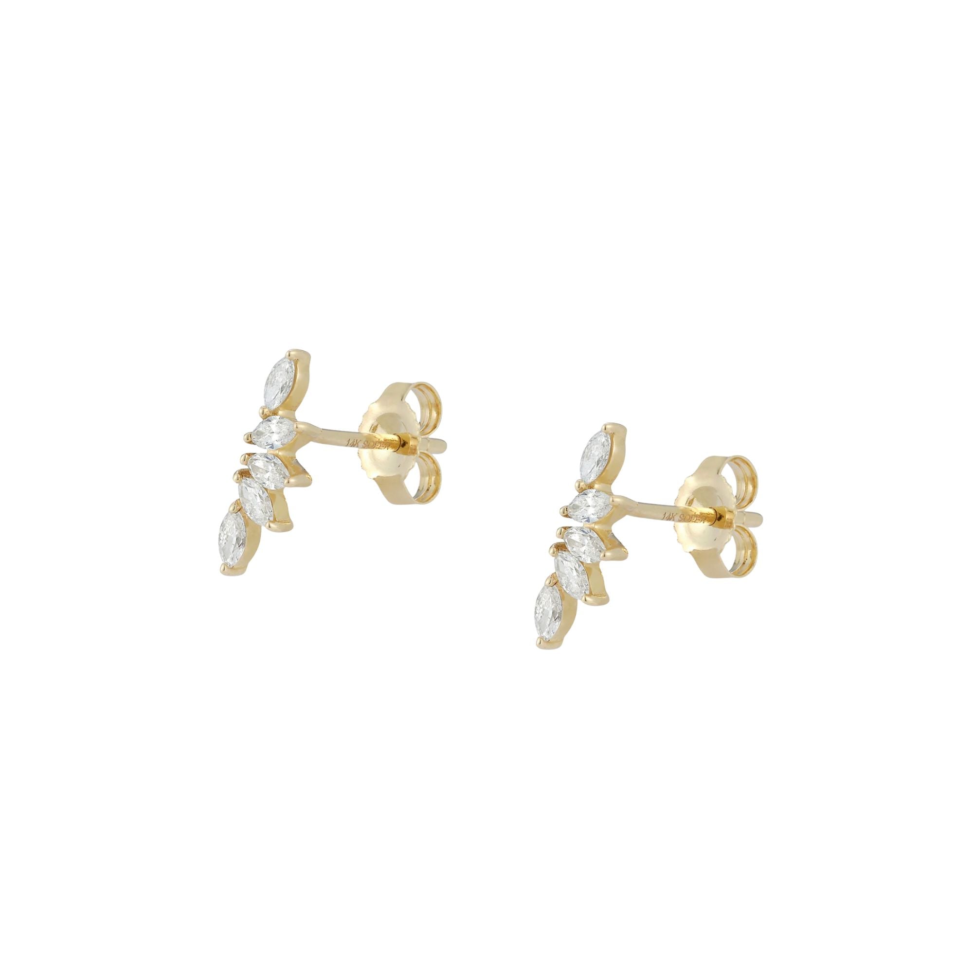 Marquise-cut diamonds arranged in a subtle vertical cluster, designed to fan up the ear. Delicate in scale but intentional in shape, these studs add a soft point of interest to any ear stack.