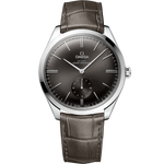 This model has a polished 40 mm stainless steel case, which is presented on a grey leather strap. The domed grey dial includes a Small Seconds display at 6H, along with hands and domed indexes in 18K white gold.