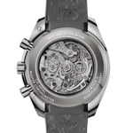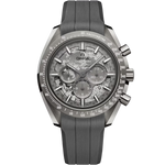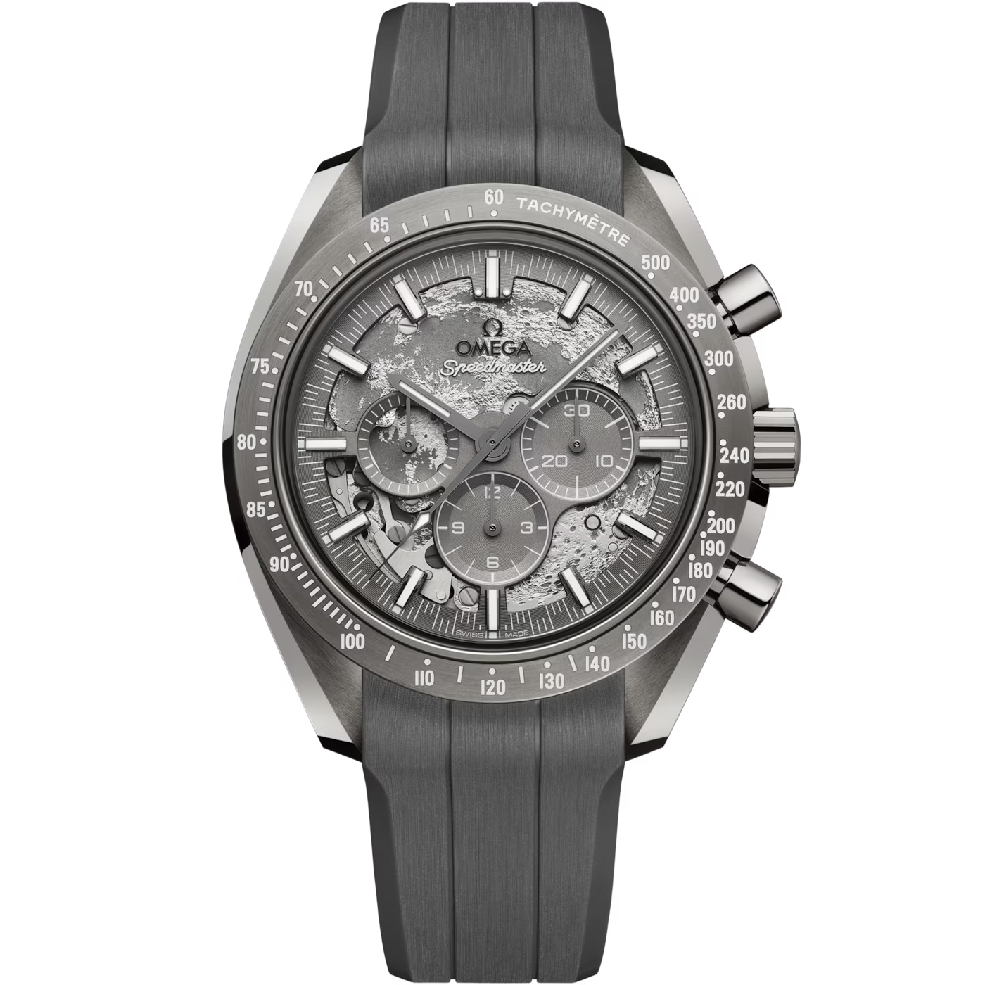 Honouring OMEGA’s legacy of space exploration, this Speedmaster Grey Side of the Moon features a 44.25 mm case in polished-brushed grey ceramic with a plasma treatment. The brushed bezel is also made from grey ceramic and features a laser-engraved tachymeter scale that is filled with white Super-LumiNova.