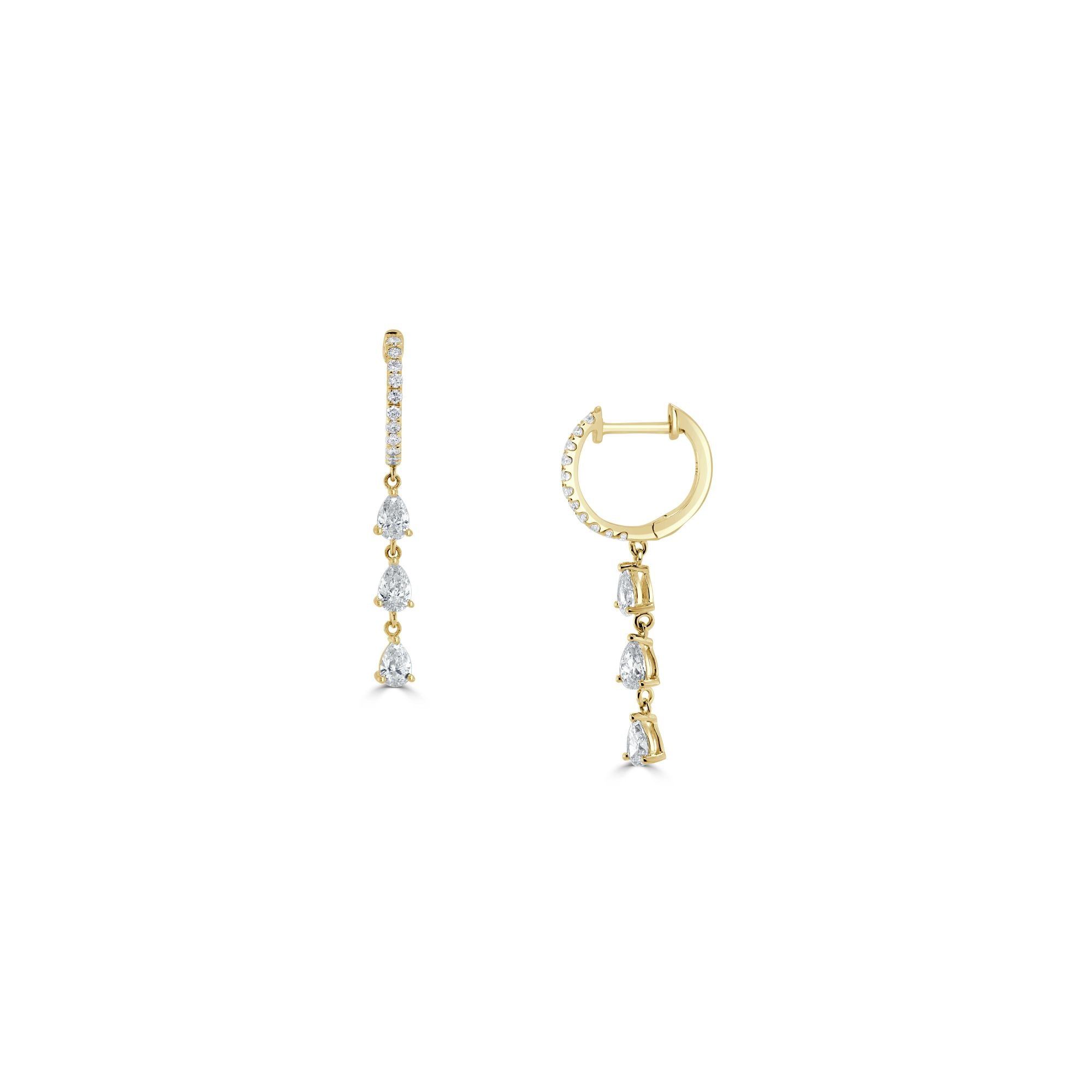 Triple Pear Diamond Drop Huggie Hoop Earrings