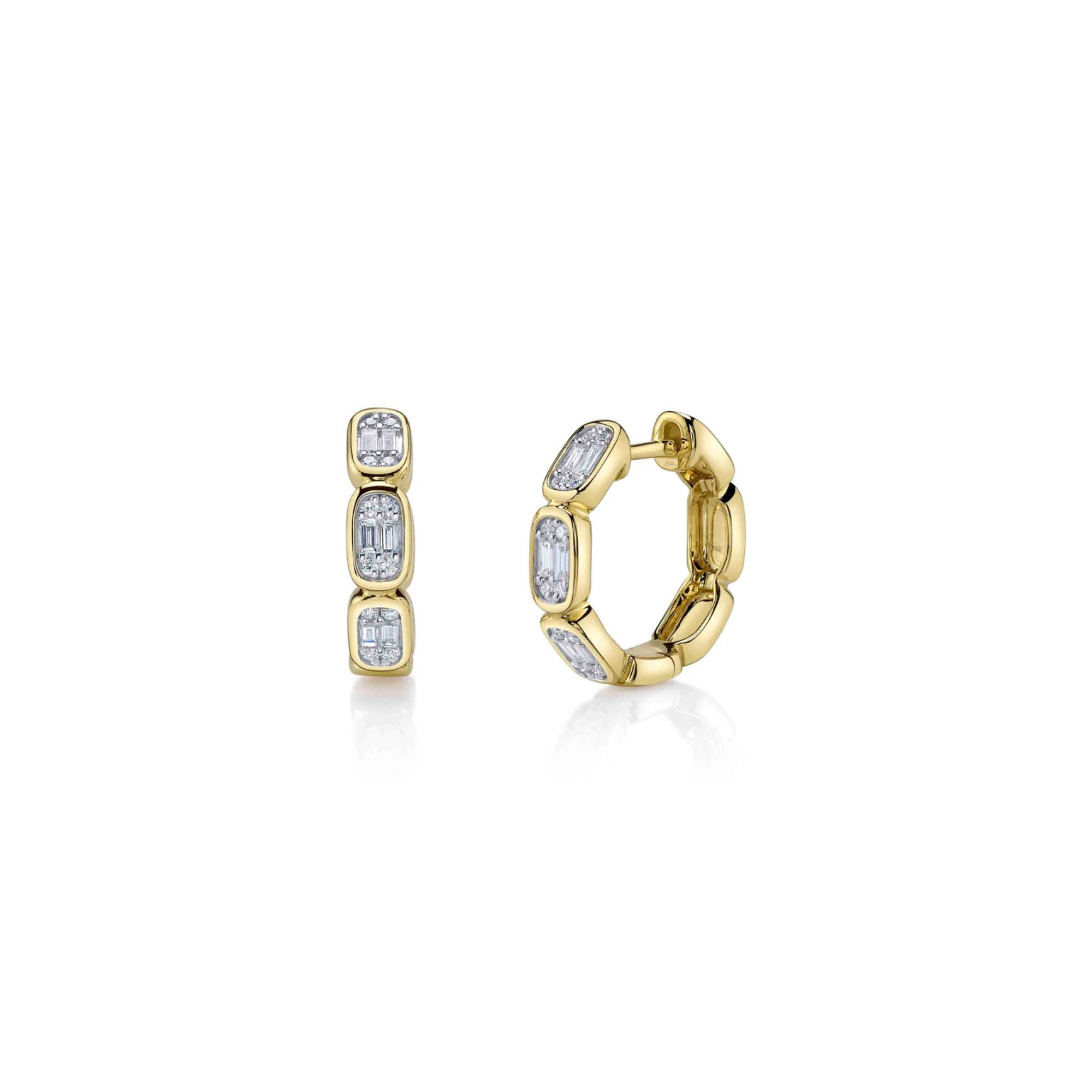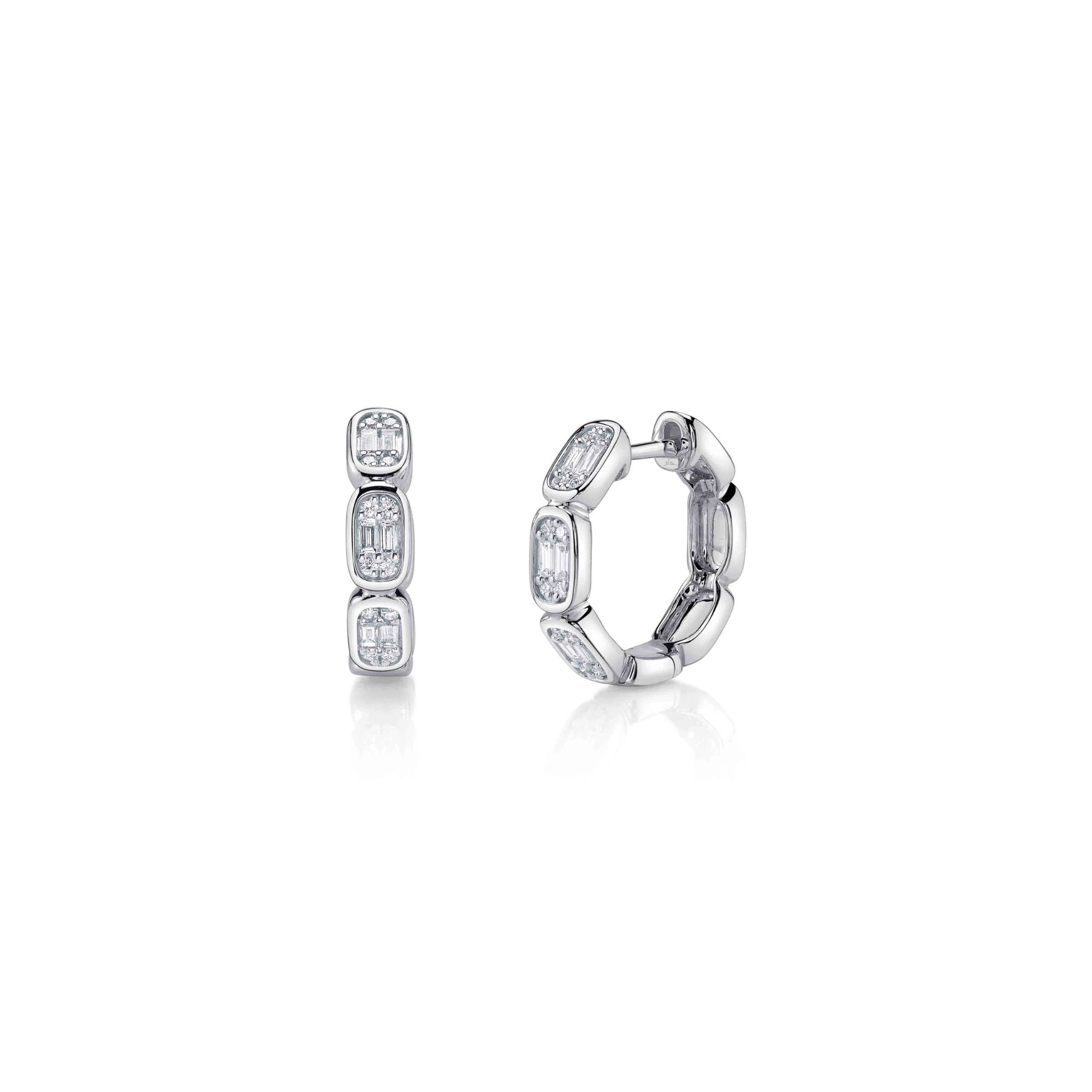 Not your standard hoop. These earrings frame the face with sleek lines of round and baguette diamonds, each one cut to emphasize its brilliance.