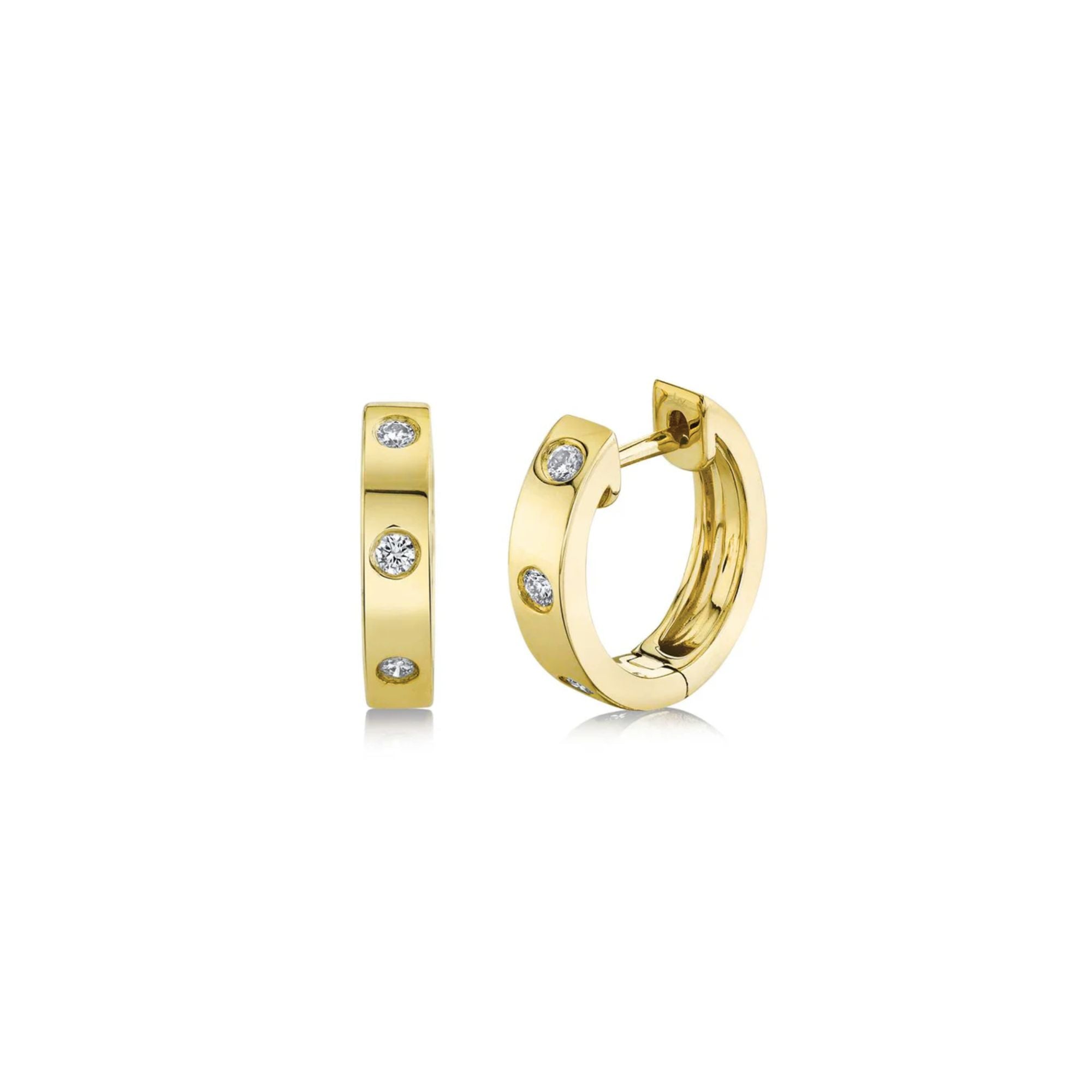 Sleek and minimal, these huggie hoops are elevated with flush set diamonds for a hint of every day sparkle. The perfect addition to any ear stack.