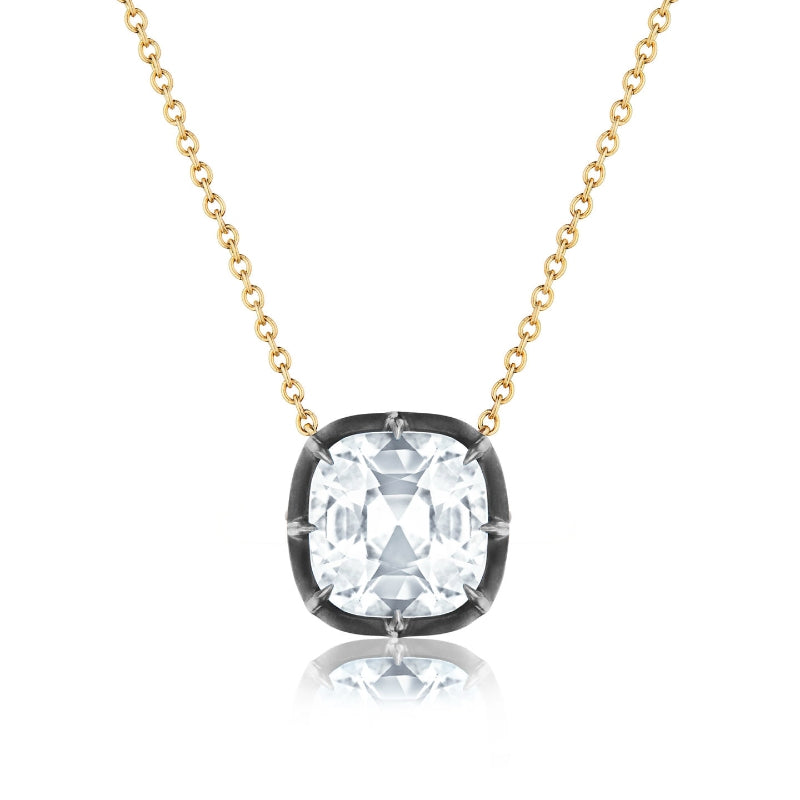 Kwiat 18Kt Yellow Gold & Sterling Silver Over Gold Cushion White Topaz Pendant Signed Fred Leighton