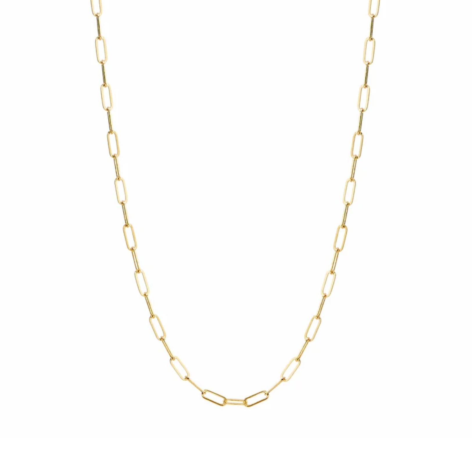 A classic for a reason. This solid 18k yellow gold paper clip chain is the perfect base for your charm collection.