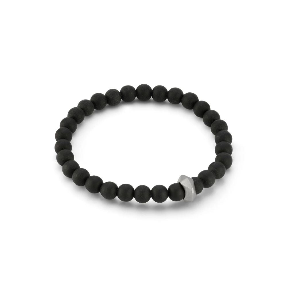 Matte black onyx beads meet a sculptural sterling silver origami accent in this sleek, stretch-fit bracelet. Minimalist, modern, and made to wear every day.