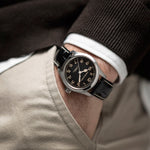 The Khaki Field Murph Auto 38mm is here. One of the science fiction's most famous watches known by fans as 'The Murph' is now housed in a compact 38mm stainless steel case. Featuring ultra-readable black dial, beige vintage-style Super-LumiNova? finished hands and black leather strap, it reflects the key aesthetic codes of its 42mm predecessor. Powered by the H-10 automatic movement boasting an 80-hour power reserve, this Khaki Field Murph Auto will capture the hearts of those who are in love with smaller watches.