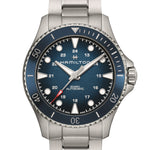 Luxury meets sport in this aquatic-inspired timepiece designed to be equally at home in a seaside cabana or deep sea exploring. A ceramic bezel, featuring precisely engraved numerals adds high-seas style to this Khaki Navy Scuba Automatic, and protects it from corrosive elements such as sand and saltwater. With a larger 43mm case, increased water resistance to 30 bar (300m) and an extra-legible dial, this high performance watch is ready for all your adventures on, in or under the water.