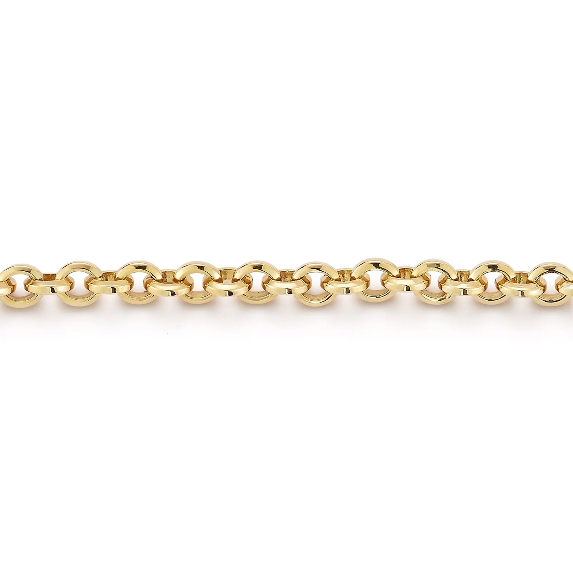 Introducing a new foundation for Jade Trau's collection of interchangeable charms to live on, crafted with generous weight and intention for mixing and matching, a new collection of substantial chains to pair. Handcrafted in 18-Karat Yellow Gold, the Rolo Chain is bold and ready to wear on its own or pair with your favorite charms.