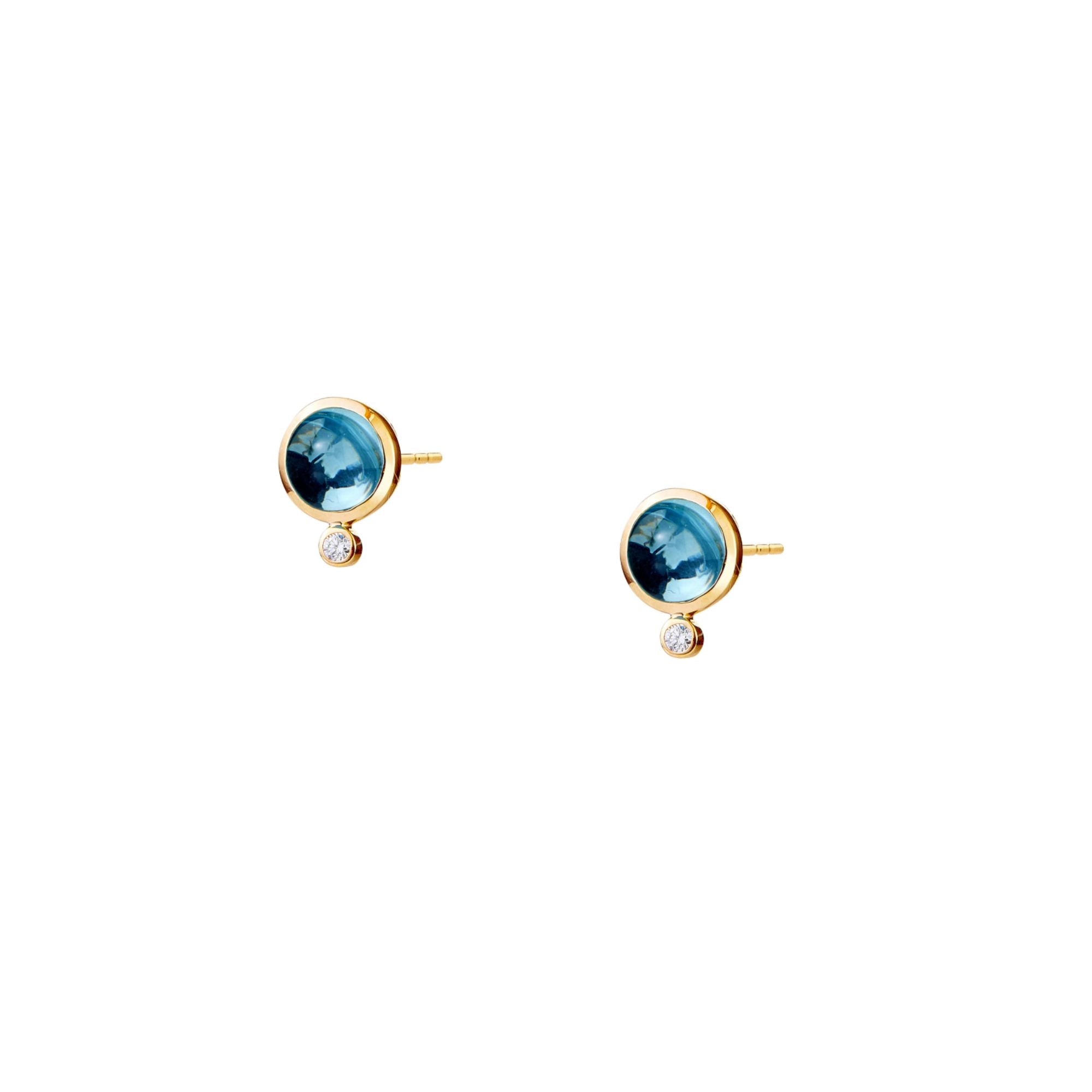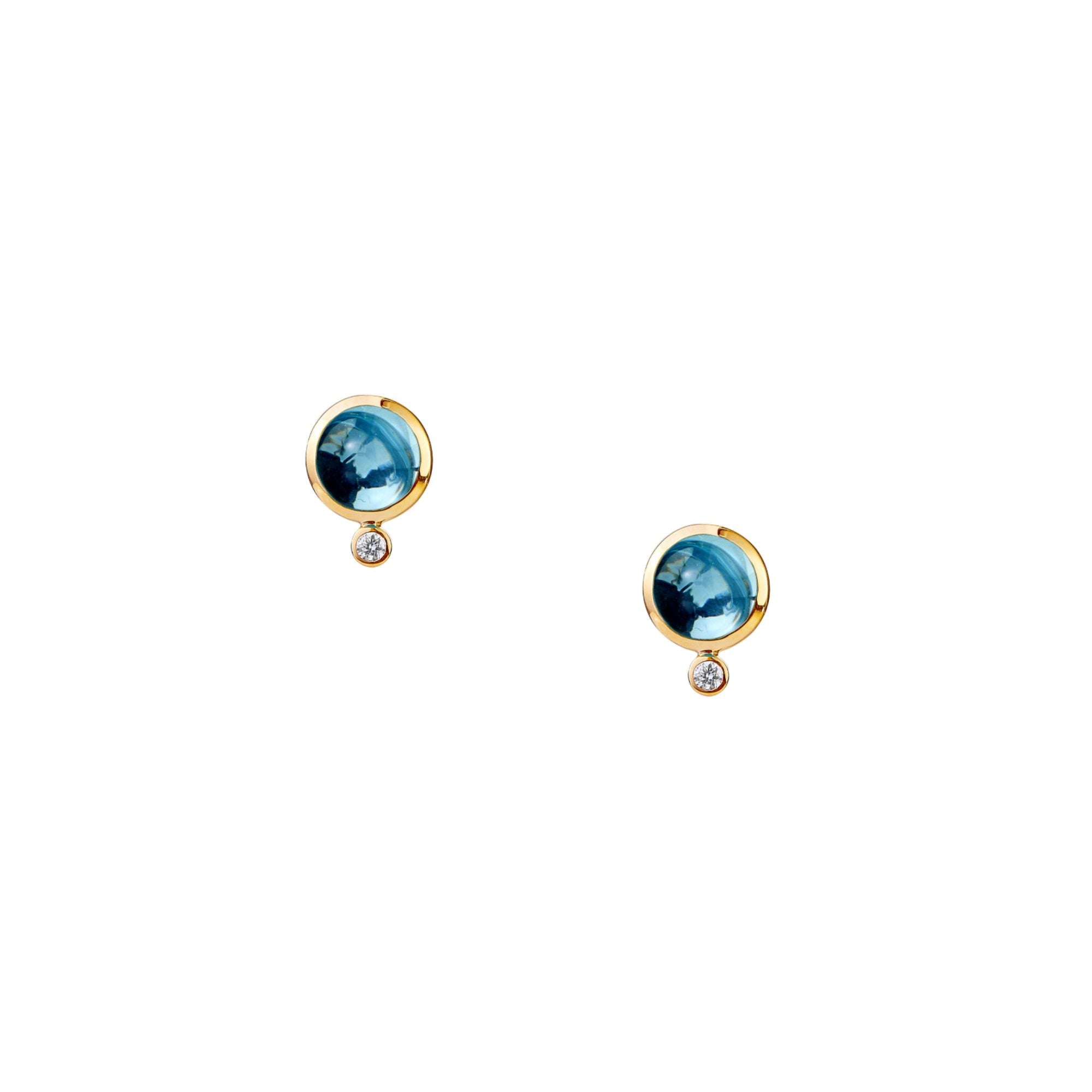 Soft blue topaz framed in gold, with a delicate diamond accent below. A subtle detail that makes all the difference.