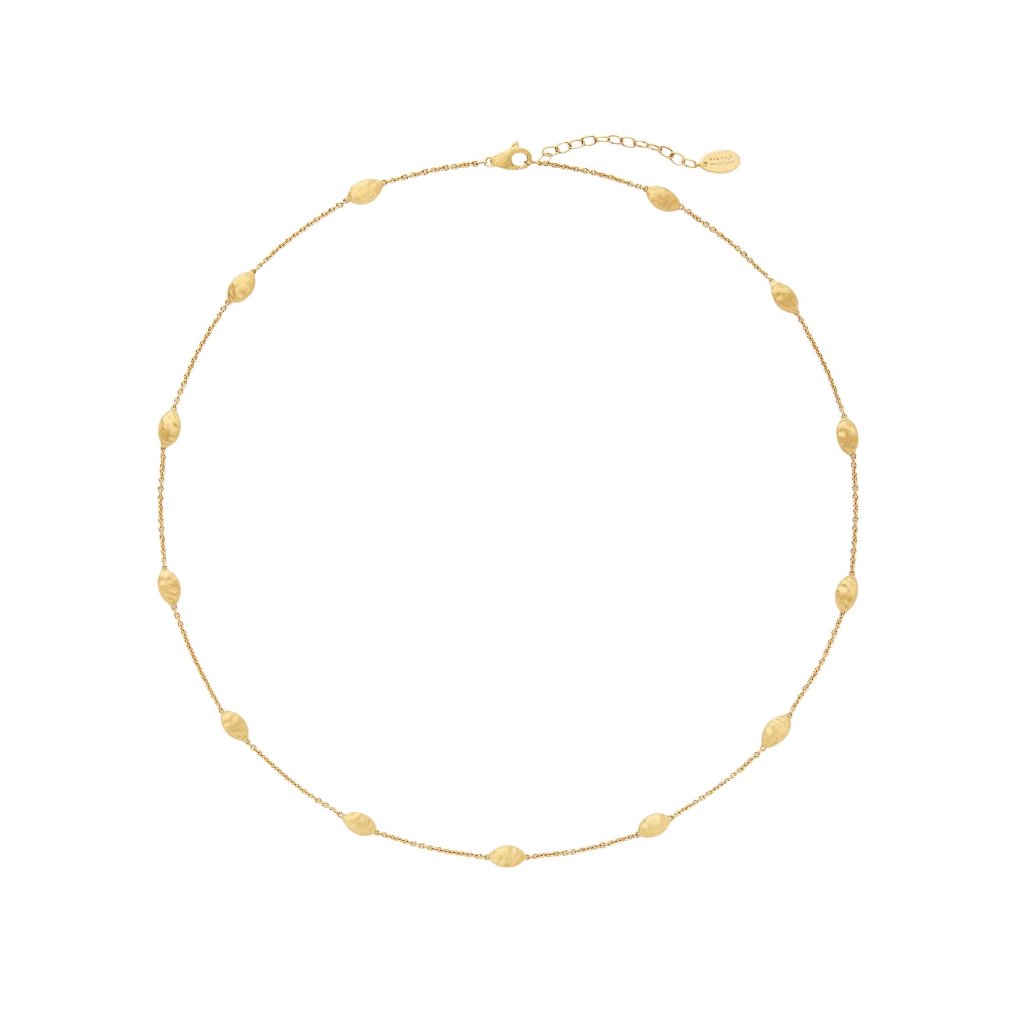 Handcrafted in Italy, this 18K yellow gold necklace from the Siviglia collection features evenly spaced oval beads. Each baroque-inspired form echoes irregular cobblestones of Seville's historic quarter, their brushed surfaces capturing light and shadow. Inspired by organic shapes and the beauty of imperfection, this piece creates refined presence flattering every neckline. Adjustable length ensures perfect fit with timeless, versatile sophistication for any occasion.