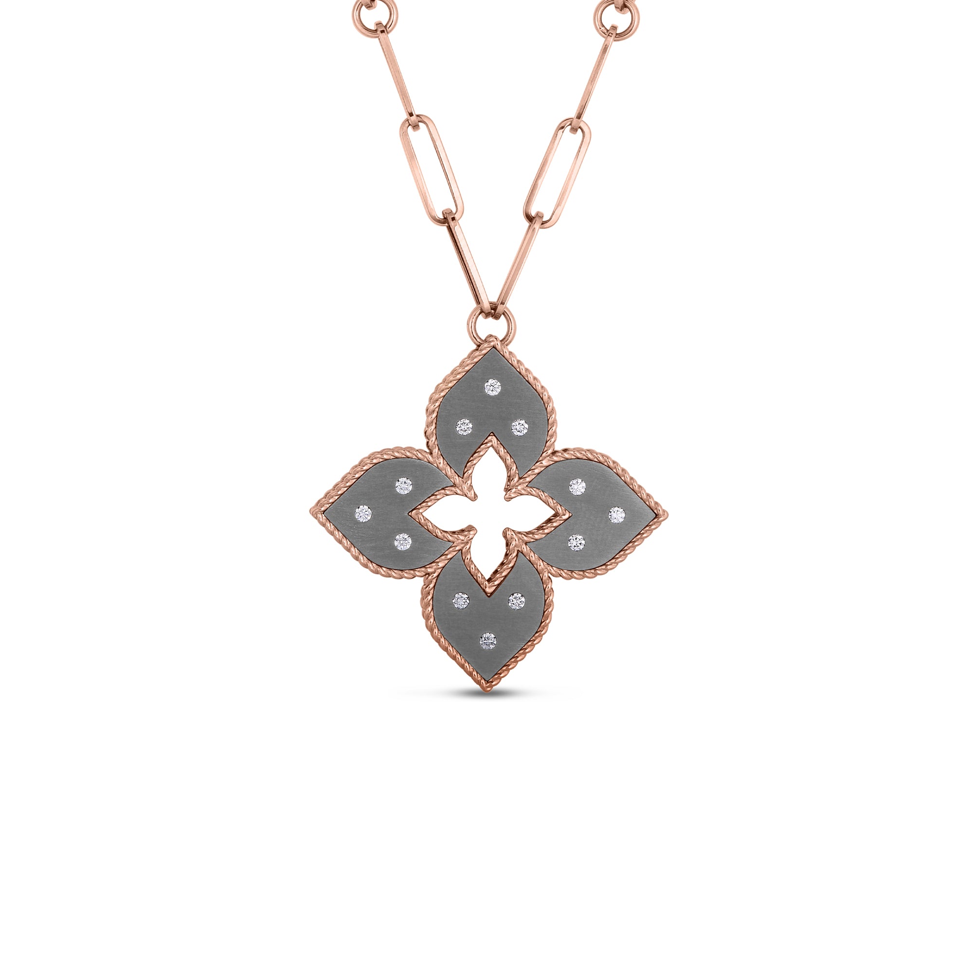 The timeless combination of gold and white diamonds elevate this collection by Roberto Coin to something irresistibly elegant, with an intriguing edge.