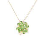 A playful take on a traditional good luck charm, the Juju Four Leaf Clover Charm Necklace is covered in green sapphire and tsavorite. Hanging from a 14k gold diamond cut cable chain, and part of the highly collectible Juju Collection, each charm features signature ribbing detail and the same gold design on the back.