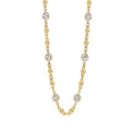 This 18k yellow gold rosary-style chain features bezel-set old European cut diamonds. Thoughtfully spaced and handcrafted for effortless wear, it adds just the right amount of sparkle whether worn alone or layered with a favorite pendant.