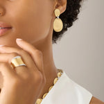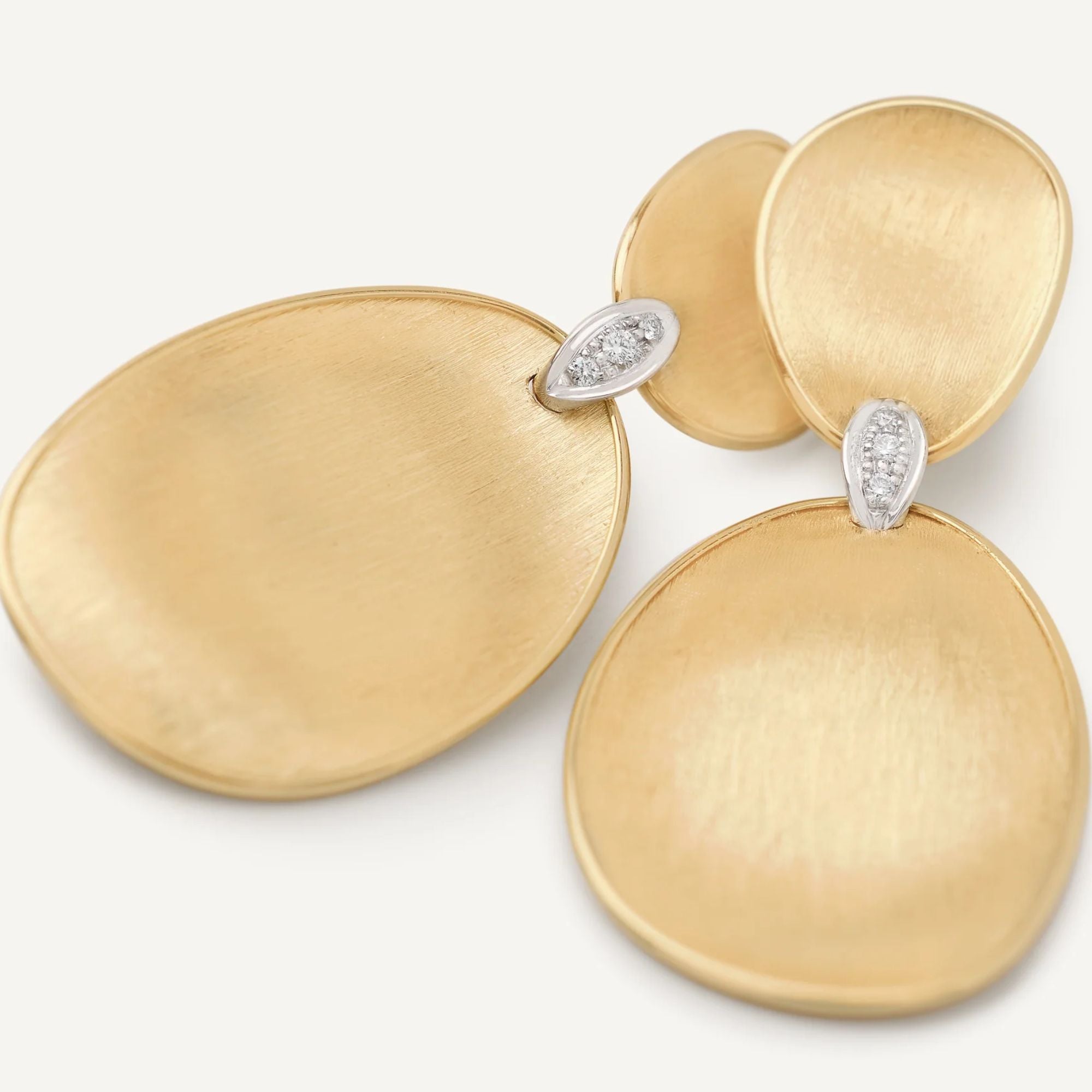 Simply sophisticated, these chandelier earrings are crafted in 18K yellow gold and feature a series of hand-engraved gold leaves using the ancient Florentine "bulino" technique. Delicate pavé diamond connectors enhance the sculptural design with brilliance and rhythm. A timeless expression of elegance and craftsmanship—perfect for day-to-evening refinement.
