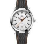 The silvery dial is distinguished by a horizontal “teak” pattern which is inspired by the wooden decks of luxury sailboats. There is also a date window at 6 o'clock and blackened hands and indexes filled with white Super-LumiNova. Orange is used for the central seconds hand, the "Seamaster" wording and the four quarter numbers on the minute track.
