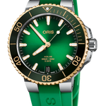 Aquis, 41.50 mm, Multi-piece stainless steel case, 18K yellow gold turning top ring, ceramic minutes scale top ring