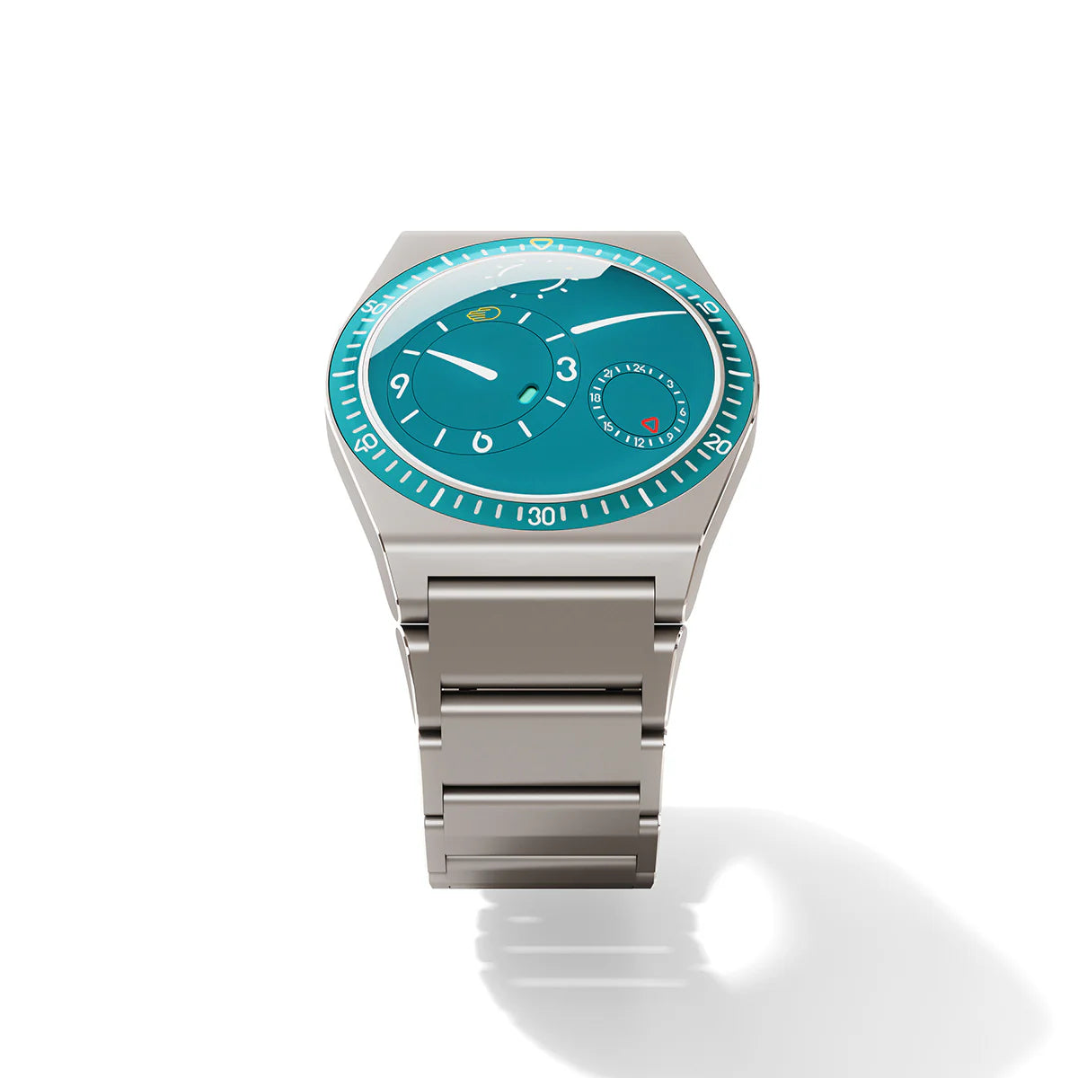 - Patented ROCS 7 - Ressence Orbital Convex System - driven by the minute axle of a customised calibre